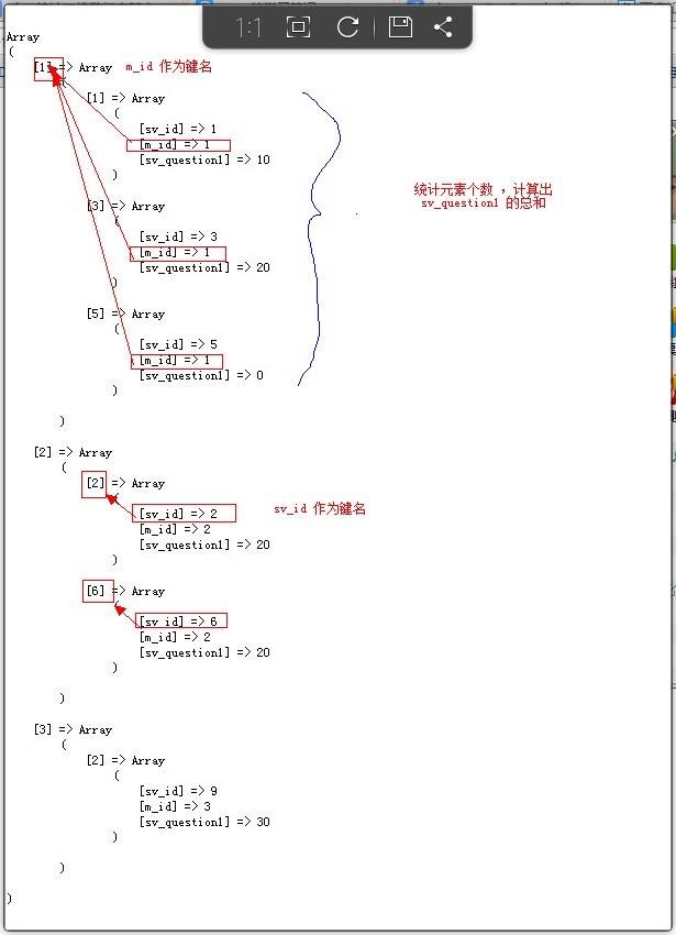 array( 'sv_id' => 5, 'mid' => 2, 'sv_question1' => 20 ),<br>