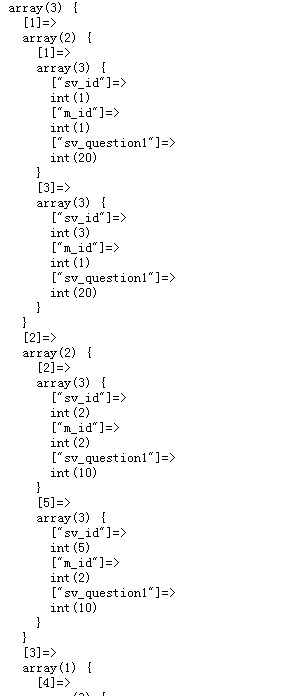 array( 'sv_id' => 3, 'mid' => 1, 'sv_question1' => 20 ),<br>